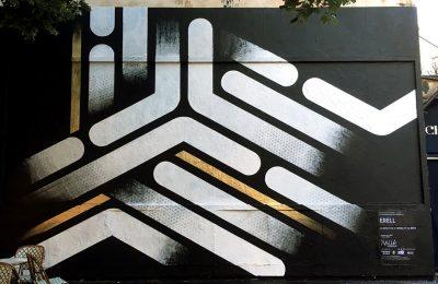 Son travail est issu du graffiti. Le module qu’il emploie aujourd’hui résulte du fractionnement d’une forme géométrique simple, l’hexagone, elle même issue d’une schématisation de son propre tag. De cette pratique, il retient l’automatisme du geste, l’énergie qui transforme la typographie en emblème visuel, en logo, modulable et adaptable, mais également le caractère viral, vivant de la multiplication du motif. À l’image des tags qui grouillent sur les murs de la ville et lui donne vie, le module d’Ërell se démultiplie afin de générer une infinité de motifs « moléculaires » et de compositions géométriques qui interagissent avec l’architecture ou le mobilier urbain.