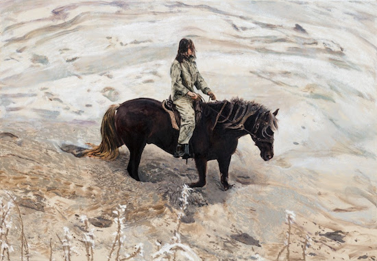 L’œuvre de Sara-Vide Ericson se caractérise par de grandes peintures à l’huile figuratives inspirées de son environnement proche. Parmi les motifs récurrents de son travail, des objets-souvenirs liés à diverses histoires et expériences, ses propres chevaux ou encore la nature qui l’entoure, soit les forêts, les rivières et les marécages du Hälsingland, région sauvage du Nord de la Suède dans laquelle elle a grandi et où elle s’est réinstallée avec sa famille il y a près de 10 ans. Ses toiles ne sont ni des autoportraits nombrilistes ni des paysages naturalistes pour autant. Boycottant le vert tendre qui signe chaque année l’arrivée du printemps, se pressant même de collecter du matériel avant que la saison fatidique ne démarre, Sara-Vide Ericson ne peint pas la “belle nature”, cette nature carte postale dont les artistes, suédois entre autres, ont souvent fait cliché.
