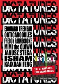 Vertikall galerie a voulu, au travers de « Dictatures », se réjouir de ces mouvements de résistances urbaines et populaires,mais aussi prévenir de l’existence de dictatures latentes, masquées qui nous entourent : médiatiques, culturelles, politiques, de pensées communes mais aussi des possibles résurgences de régîmes déchus incitant ainsi l’individu à une constante veille intellectuelle et un esprit de résistance continu …un regard éveillé sur les dictatures passées et celles qui pourraient ressurgir…