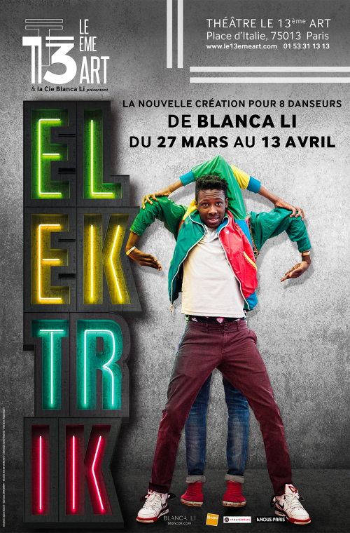 Entourée d’une équipe artistique de haut vol, Blanca Li livre ici sa troisième production autour de ce style urbain survolté (spectacle « Elektro Kif », 2009 et film « Elektro Mathématrix », 2015). Avec huit interprètes devenus des références mondiales de la culture électro et une musique en partie composée par Tao Gutierrez, « ELEKTRIK » est un concentré de talents mis au service de l’électro.