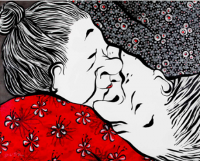 Du 11 mai au 10 juin 2017 Au jour le jour pour toujours. Cette maxime suit Ella & Pitr depuis plusieurs années. Elle représente leur amour autant que leur travail. L’amour se construit, au jour le jour, demandant attention et persévérance pour ne pas se laisser emporter par la routine du quotidien. Au même titre que l’amour, le travail, surtout lorsqu’il se fait en couple, requiert une attention et un effort particuliers pour évoluer sans cesse. Quels que soient le support ou le thème de leurs créations, Ella & Pitr s’appliquent à développer leur potentiel, se remettant régulièrement en question, pour voir chaque fois plus grand, chaque fois plus abouti. Ainsi, en 2015, ils n’ont pas hésité à relever le défi proposé par Martin Reed, fondateur du NuArt Festival, pour aller peindre le plus grand fresque du monde. Et après plusieurs jours de labeur aidés par des volontaires – Lilith and Olaf apparaissaient, sur les toits d’usines à Klepp, étendus sur 21 000 mètres carré. Au jour le jour, Ella & Pitr ont, après avoir réalisé cet énorme travail, continué de voyager pour peindre leurs géants aux quatre coins du monde. : Chicago, Montréal, Pékin, le Par- vis de la Défense, la pelouse du Stade Geoffroy Gui- chard de Saint-Étienne, Ostende, La Réunion… autant d’endroits désormais ornés des personnages animaux ou humains du couple stéphanois. Et si chacune des peintures est unique, toutes ont néanmoins un point commun : n’être visible que du ciel. Cet univers si propre, si spécial, dans lequel le poétique l’emporte presque toujours, est retranscrit sur toile avec autant de délicatesse qu’il est déployé au sol, sur les toits ou sur les murs. Ella & Pitr jouent vrai. Que le trait soit simple, naïf, ou très abouti et techniquement complexe, il dévoile des situations dans lesquelles chacun peut se retrouver. Voilà leur force. Cet effet ‘madeleine de Proust’ qui met l’observateur dans une situation qui lui est familière. Convoquant des états d’âme : tendresse, enthousiasme, persévérance, contemplation, réflexion, solitude, amour… mettant le vivant (humain ou animal), et son rapport aux autres et au monde au centre des œuvres. Ce réel ne peut cependant pas être complètement saisi par l’observateur. Car bien qu’ils mettent en scène des situations vraisemblables, le mode de traitement amène une part de magie – d’où la poésie, au delà de son aspect narratif – qui rend l’œuvre autant familière qu’insaisissable ; bien souvent fascinante. A découvrir sur Artistik Rezo : Vernissages – Paris – Mai 2017 [Sources : © communiqué de presse]
