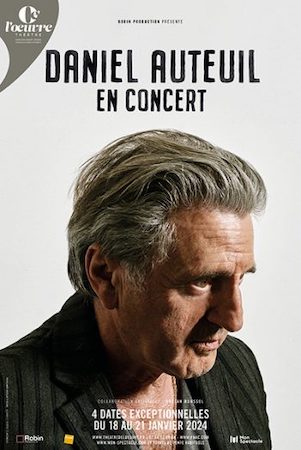 Après le succès de son premier album “Déjeuner en l’air”, inspiré de textes de grands auteurs, Daniel Auteuil confirme avec ce nouveau spectacle musical plus personnel, sa passion pour la musique et la composition. Venez le découvrir sur la scène du Théâtre de l’Œuvre du 18 au 21 janvier 2024.
