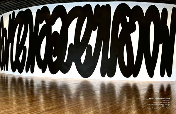 phrase de Martin Luther King. Par sa graphie hors norme, Tania Mouraud manifeste qu’il convient de batailler pour voir des mots qu’un usage médiatique a fini par rendre invisibles. En associant plusieurs langues – anglais, français, hébreu, chinois, hindi, arabe, coréen – à la singularité de son langage plastique, l’artiste rend au message antiraciste, qui doit “encore une fois” être répété, toute sa force, sa justesse et son efficacité.
