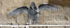 D’autre part, les œuvres sur papier ont vocation à exister sur le mur de manière extrêmement éphémère, l’objectif est de surprendre le passant-spectateur, de le faire sourire devant l’apparition soudaine, au matin, d’un pochoir sur le mur. Sa disparition, parfois rapide, parfois moins, due aux services de nettoyage de la ville, aux « collectionneurs », aux intempéries, à l’action du temps qui irrémédiablement effacera le pochoir, cette disparition, donc, est partie intégrante de l’œuvre, et du support utilisé.