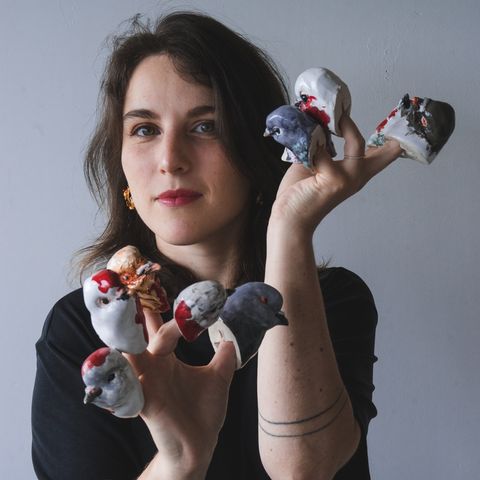 Les œuvres dessinées, les peintures, les installations et les sculptures en céramique d’Elisabeth Lincot évoquent un univers naturaliste peuplé d’oiseaux et de figures humaines.