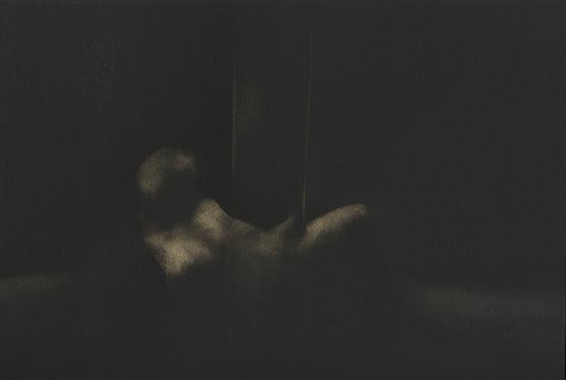 Stéphane Fromm peint des corps, fantomatiques, transparents, parfois seuls ou en couple, ils brillent dans la nuit d’une aura luminescente. Richard Laillier utilise la pierre noire, en partant du néant il crée la lumière et nous laisse entrevoir la chair mise à nu ; De pâles lueurs redonnent vie à ces figures humaines sorties tout droit de l’abîme. Les paysages de Marie Rameau nous transportent dans un univers silencieux ; Pas de repère, un monde hors du temps, un arbre, quelques personnages au loin perdus dans une neige argentée, un ciel de plomb, il faut s’approcher très près pour traverser le miroir. Vermibus brouille les pistes, mélange les codes, joue sur l’identité. Ses collages sont plutôt des déchirures, celles des êtres confrontés à la dépression, la nostalgie, l’introspection et l’isolement. Quatre visions en clair-obscur, une exposition dense et intime, puissante et sensible, pour amateurs passionnés.