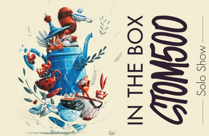 « In The Box » sera l’occasion de découvrir ou redécouvrir l’univers haut en couleur et psychédélique de STOM500 où la thématique animalière prédomine. Sous un vernis humoristique se cache bien évidemment un message pertinent, humaniste ou écologique, où se mêle un bestiaire souvent incompatible tels le corbeau et le renard, symbole du vivre ensemble.