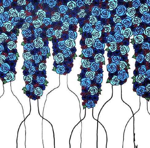 Le travail au marqueur noir de Zuae met en scène des personnages en pleine introspection. Le motif de la fleur, récemment éclos dans sa création, est aujourd’hui porteur de sens. Les fleurs germent dans les pensées de ses personnages hésitants, ou revêtent des traits humains pour questionner la valeur des interactions sociales. Illustrant les concepts de solitude et du vivre ensemble, Zuae utilise la fleur pour personnifier les tensions qui coexistent en chacun, entre acceptation de soi et pression du groupe.