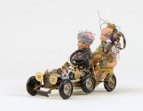 Du 16 au 30 juin 2015 Les voilà qui partent pour le champ de bataille. Les petits dudes sont armés de leurs parures étincelantes, de mille petits clous nés de leurs cicatrices intérieures. Nés il y a un temps, les “Dudes” ont la grâce de mouvements félins et doucement saccadés. Étonnés par leur audace, ils avancent par a-coups, prudemment, en demi-cercles, laissant parfois échapper un petit rire gracieux, comme malgré eux. Ils brouillent, embrouillent les cultures et les religions, usurpent les titres de noblesse. Voyous célestes, les voilà partis . Fiers d’eux, sans peur et sans reproche. Au volant de leurs belles montures, fraîchement abreuvées et cajolées. Arrivés à mi-chemin, l’un d’eux est soudain pris d’un doute: contre qui vont-ils se battre ? Le stratège de la bande avait certes tout prévu, mais, dans la précipitation du départ, a oublié les plans et le nom de l’ennemi. [Source de texte et crédit visuel: communiqué de presse] |