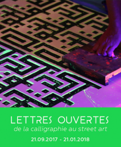La saison Lettres ouvertes, de la calligraphie au street art explore les dimensions calligraphiques dans les arts actuels à travers une exposition et de nombreux événements : arts de la scène, projections, conférences, débats, ateliers jeune public… Apparue au VIIe siècle, la calligraphie arabe fixe sur papier le texte du Coran, jusqu’alors transmis oralement. Cet art sacré répond à un ensemble de règles strictes que les artistes contemporains n’hésitent pas à transgresser. Leurs œuvres s’a ranchissent du contenu religieux, des traditions ancestrales, du sens même des lettres, et s’exposent jusque sur les murs des villes.