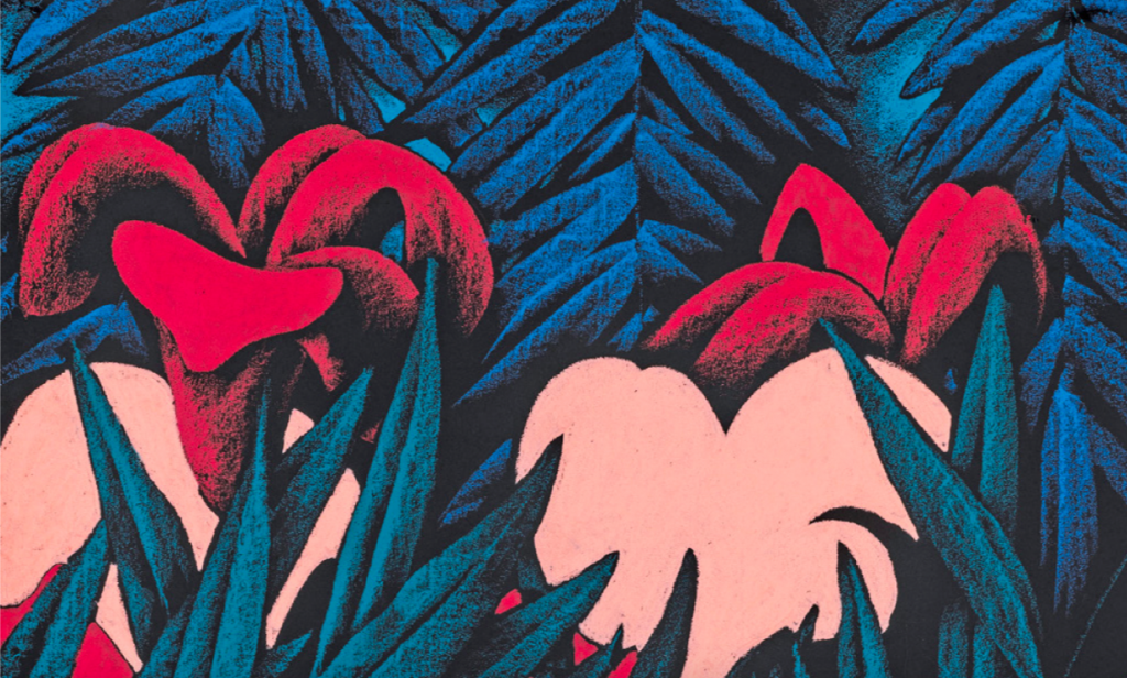 Big Pink Flowers, acrylique et pastel gras sur papier marouflé sur toile, 120 x 80 cm, 2019 (détail)