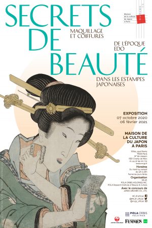 Secrets de Beauté, maquillage et coiffures de l’époque Edo dans les estampes japonaises est une exposition inédite, réunissant près de 150 estampes et 60 objets (miroirs, peignes, épingles à cheveux, perruques…), une plongée dans l’intimité et les rituels de beauté des femmes de l’époque Edo (1603-1868). Elle permet de découvrir à travers quatre sections thématiques l’évolution du maquillage et de la coiffure qui répondait au respect de règles sociales strictes et à la recherche de l’élégance.