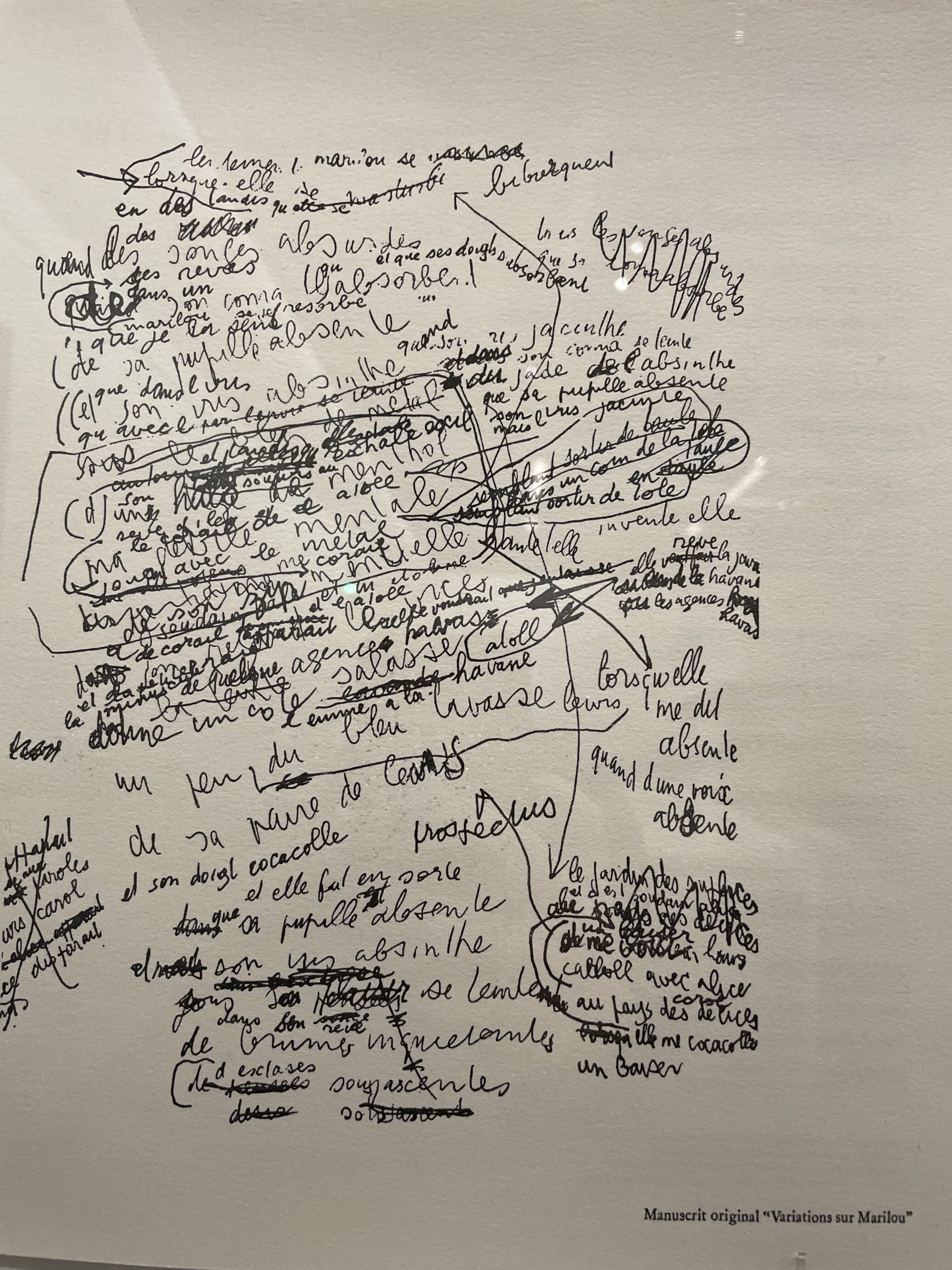 L’exposition “Le mot exact”, nous permet de plonger dans le paysage littéraire de Gainsbourg et nous montre son évolution et ses différentes facettes jusqu’au fameux Gainsbarre, à travers trois parties (“Le paysage littéraire”, “Du double littéraire au double médiatique” et “La méthode Gainsbourg”) tout en étant bercé par sa musique le long de l’exposition.