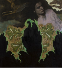 Mêlant l’usage de la gouache, du pastel sec et du fusain, Iris van Dongen juxtapose, recompose et allie références à l’Art nouveau ainsi qu’à l’art asiatique, et histoires de spectres. Dans les pastels de grand taille d’Iris van Dongen, des femmes mystérieuses dégagent un air mélancolique, dérobées par un brouillard ou une toile d’araignée. Les poses et les vêtements de ces femmes assurées, voire fatale, semblent d’être prêtés de l’estrade. L’artiste s’inspire aussi du ‘death metal’, des tatouages et de l’histoire de l’art pour ses pastels séduisants. Les motifs sur ses robes colorés rappellent le décor multicolore de Gustav Klimt et les robes luxes et regards absents des femmes dans les tableaux préraphaélite du 19ème siècle.