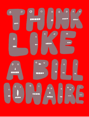 Think Like A Billionaire – Pensez comme un milliardaire, est le slogan ou crédo moderne par excellence qui fait l’apologie de la privatisation, la sponsorisation, la spéculation, le crédit d’impôt, les produits dérivés, le retour sur investissement, etc.