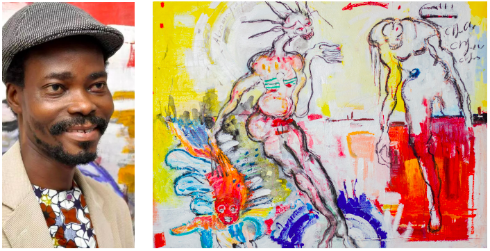 Pour cette première exposition collective présentée à L’Appart, Maurice Renoma assure le double rôle d’artiste et de curateur. Il a décidé de rajouter la palette de couleurs du prestigieux artiste béninois Dominique Zinkpè en qualité d’invité spécial.