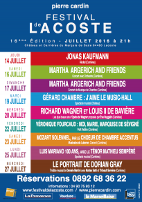 Festival de Lacoste 2016 Du 14 au 27 juillet 2016 Tarifs: 40€ à 280€ Réservations via fnac Château de Lacoste |