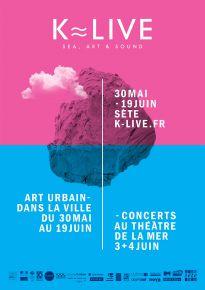 K-LIVE est un concept original, pluridisciplinaire, un festival qui crée un pont entre art urbain, arts plastiques et concerts de musiques actuelles. Depuis 2008, K-LIVE investit, chaque année un peu plus, la ville de Sète. Centré sur le Théâtre de la Mer, le festival s’étend dans d’autres espaces culturels, touristiques et urbains… Les organisateurs de K-Live Festival Huit ans déjà que K-LIVE met de la couleur sur les murs de Sète et du son au Théâtre de la Mer. Huit années d’Art Urbain avec une trentaine d’oeuvres réalisées dans la ville, dont plus de 20 sont encore visibles dans le cadre du MaCO (Musée à Ciel Ouvert). En 2016, K-LIVE a fait le choix de mettre en avant de jeunes talents, des artistes qui sont en pleine ascension et qui sans aucun doute feront la une de la presse spécialisée et le bonheur des galeristes dans peu de temps. C’est le cas du Montpelliérain MAYE, du Parisien Romain FROQUET ou encore du Barcelonais SPOGO que l’on retrouvera sur les murs de la ville en juin 2016. Mais K-LIVE mise également sur des artistes confirmés comme Philippe BAUDELOCQUE, qui investira en solo la Fondation, cette friche du centre ville que le festival s’approprie depuis 3 ans, ou encore SUN7 et Jean-Luc NAVETTE qui interviendront pendant les soirées au Théâtre de la Mer. Huit années également de concerts avec des prises de risque et une programmation toujours singulière. En jouant la carte de la nouvelle scène électro, K-LIVE promeut également de jeunes artistes et s’adresse ainsi à un public exigeant. Bref, la programmation de K-LIVE 2016 est résolument sous le signe de la jeunesse et tournée vers l’avenir !!!