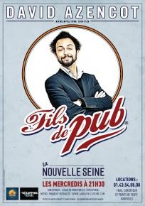Fils de pub De et avec David Azencot Du mercredi 4 février au mercredi 25 mars 2015 Les mercredis à 21h30 Tarifs: à partir de 10€ Réservations en ligne ici ou par tel. au 01. 43.54.08.08 et points de vente habitueles FNAC, Carrefour… Durée :1h30 La Nouvelle Seine |