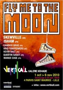 « Fly me to the moon » sera l’occasion de la rencontre exclusive de Skewville (NY) et de Isham (FR) autour de ce mystère à la limite de la légende urbaine et associera 5 autres artistes photographes, peintres et plasticiens (Candice Gras, Kris Trappeniers (be), Kevin Vast (NY), Quentin Sagot, Manue Cuge).