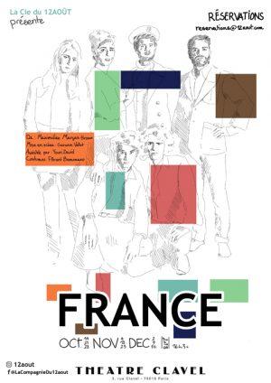Pascal et Sylvain, jeunes jumeaux incandescents, veulent toucher du doigt un idéal qui leur échappe encore.Ils tentent d’un côté de s’émanciper de leur mère, une femme meurtrie aux manières exubérantes, bercée par des moeurs toutes gaullistes, de l’autre des ambitions rêvées par leur père. Entre eux, Maggie, femme de chambre insoumise 100% new-yorkaise, tente de trouver sa place. France est un huis clos qui fait éclater les normes. La virilité et la féminité y sont questionnées, à cheval entre les vieux codes et le vent enivrant de mai 68.