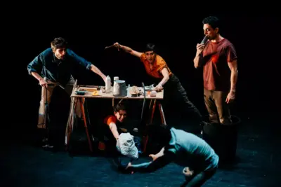 Ils sont cinq et se sont rencontrés à l’Ecole internationale de théâtre Jacques Lecoq, l’une des plus prestigieuses écoles du monde. Cinq jeunes comédiens formés à l’art du mouvement, du chant, du mime, du bruitage. D’une inventivité folle, ils nous racontent ici avec humour et poésie les aventures de Frantz, un jeune employé que la perte d’un être cher va complètement chambouler. Créant des atmosphères sonores saisissantes, ces artistes nous transportent dans une histoire sensorielle pleine de délicatesse et de malice.