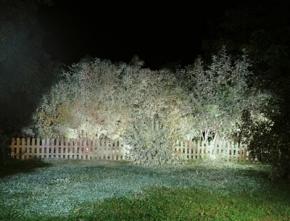 J’ai filmé et photographié un lieu qui pourrait faire penser à la scène du parc dans Blow-Up de Michelangelo Antonioni. De nuit, la caméra effectue un panoramique sur un coin de jardin trafiqué, dont la végétation est repeinte et éclairée de manière à avoir l’air réelle sur le négatif en noir et blanc. Les images en couleur, qui montrent la réalité des choses, ont l’air irréelles, mais sur les négatifs en noir et blanc, la végétation repeinte ressemble à un vrai jardin photographié en plein jour. De fait, la nuit est le négatif du jour.
