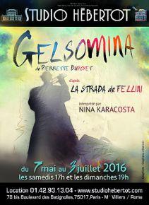 Gelsomina De Pierrette Dupoyet D’après La strada de Fellini Avec Nina Karacosta A partir du 7 mai 2016 Réservation par tel. au 01 42 93 13 04 ou en ligne ici Studio Hébertot |