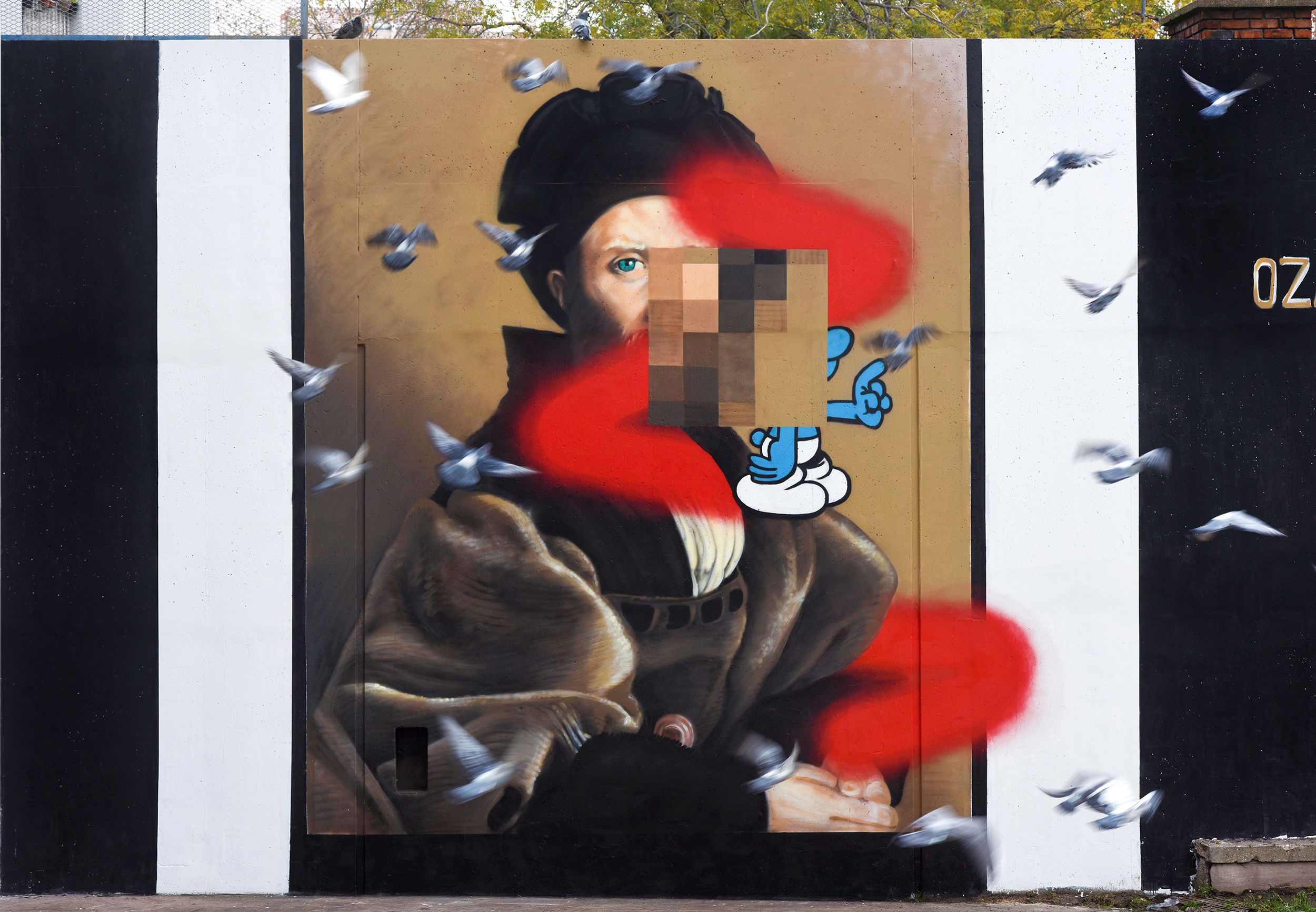 OZMO_ Baldassarre, pixelated, pimped, with schtroumpf _ © Daniel Maunoury