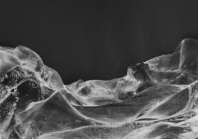 La série « Ink Mountains » place le visiteur d’abord face à une image ambigüe, évoquant des montagnes ou des reliefs indéfinis. Le support papier est plongé dans un bain de matière picturale (lavis d’encre de Chine et peinture acrylique pulvérisés à la bombe) et dessine, en s’y retirant, un véritable paysage avec ses reliefs géologiques, sa structure sédimentaire. L’image est comme ainsi révélée à elle-même par les bains du papier. « Silver Mountains », variation autour de cette série, joue d’ailleurs du procédé même de révélation photographique et se donne comme une image en négatif.