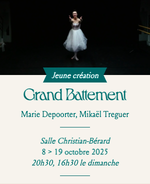 Grand Battement est le monologue d’une jeune danseuse tiraillée entre l’exigence technique de sa pratique et la découverte de la sexualité. Un pied encore dans l’enfance, l’autre qui pénètre l’âge adulte, Nelly est encore adolescente, malgré ses vingt-deux ans bien passés…
