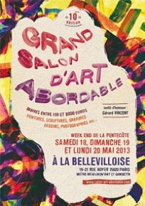 Le samedi 18, dimanche 19, et lundi 20 mai 2013 se tiendra la 10ème édition du Grand Salon d’Art Abordable à la Bellevilloise à Paris. Elle célèbre trois années d’existence, et confirme le succès de notre approche auprès du public, des artistes, des professionnels et des médias.