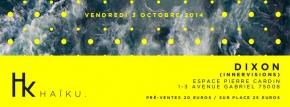 HAÏKU #10 avec DIXON Le vendredi 13 octobre 2014 de 23h à 6h 22€ en prévente Espace Pierre Cardin |