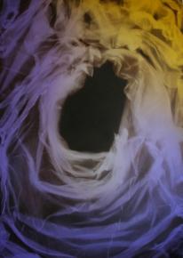 C’est la quatrième exposition autour de la lumière d’Hervé Heuzé à la Galerie Jean-Luc & Takako Richard. En 2005 avec « Séracs » ; ses peintures à l’huile reproduisaient fidèlement la lumière éblouissante de la haute montagne. En 2007 et 2008 ses « Abîmes » plongeaient les spectateurs dans une lumière diffuse. La quinzaine de nouvelles peintures présentées aujourd’hui montrent des voilages irradiés par des lumières colorées placées hors du cadre. Il décline ces lumières dans leurs multiples intensités et couleurs et au travers des plis variés des tissus. Ses voilages semblent s’enrouler autour d’un espace vide foncé et circulaire. Ce qui pourrait s’apparenter à un trou noir en astronomie qui absorbe toute lumière et ici le regard du spectateur.