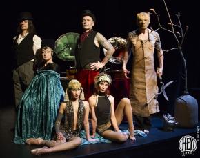 c’est pourquoi nous avons imaginé lui adjoindre un beat-boxer. Ezra est l’un des plus généreux beatboxers de sa generation et se produit avec le 78 RPM Selector depuis 2009. Surnommé l’Homme Rouge, Yannick Unfricht apporte une dimension ultra-visuelle au spectacle.  C’est un performeur hors norme dont la gestuelle insuffle beaucoup de tension et d’émotion. Se joignent à nous l’artiste néo-burlesque Lalla Morte, l’artiste de cirque Ariadna Gilabert, le tout sur un mix en temps réel des images de l’exposition HEY ! modern art & pop culture / Part II dont nous sommes aussi les initiateurs. » (Anne & Julien / Créateurs de la revue HEY !)