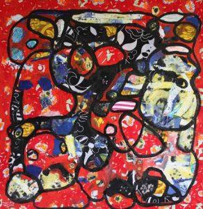 L’artiste se voit comme un grand enfant qui s’amuse quand il crée. La gestuelle dans ses dessins est spontanée, presque ludique. Il ose la couleur, souvent contradictoire : la couleur noire pour les cris de ses visages, les couleurs vives, tendres, translucides, pour faire vibrer la joie. Dans ses oeuvres, les multiples visages apparaissent et disparaissent au gré des couches de matières qui s’accumulent. Car la nature expressionniste de l’oeuvre de cet artiste tient aussi à l’expérimentation et la forte présence de matériaux et textures diverses.