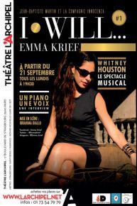I will : le spectacle qui ressuscite Whitney Houston Mise en scène de Ibrahima Diallo Avec Emma Krief Du 21 septembre 2015 au 4 janvier 2016 Tarifs : de 12€ à 22€ Réservation en ligne Théâtre de l’Archipel |