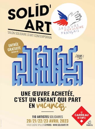 Salon solidaire d’art contemporain du Secours populaire organisé avec le soutien de la Ville de Paris, Solid’Art revient pour une deuxième édition du jeudi 20 au dimanche 23 avril 2023 au Carreau du Temple !