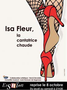 Isa Fleur, la Cantatrice chaude De et avec Isa Fleur Collaboration artistique de Hervé Devolder Conseiller musical Louis Dunoyer de Segonzac À partir du 8 octobre 2015 Tarifs 20 € //15 € Durée :1h10 Théâtre Essaion |