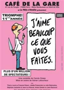 J’aime beaucoup ce que vous faites De Carole Greep Mise en scène de Xavier Le Tourneur Avec : Benjamin Alazraki , François Raison, Ariane Zantain, Caroline Frossard, Loic Legendre, Raissa Mariotti, Julie Desbrueres Jusqu’au lundi 30 mars 2015 Tarif plein : 24€ Réservations en ligne ou par tél. au 01 42 78 52 51 Café de la Gare |