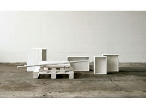 Dans les oeuvres qui composent « Places [Lost] », l’artiste rassemble des objets : quelques caisses à vin en bois de différentes formes et dimensions, deux palettes en bois et une paire de queues de billard. Fabriqués dans un but utilitaire, ces objets s’inscrivent dans une histoire « humaine ». Combinés par Jan Vercruysse de façon originale, ils transcendent leurs caractéristiques premières pour devenir les traces, les restes d’un voyage, les gardiens silencieux de morceaux de vie. Parce qu’ils sont ensuite coulés en bronze et peints en blanc quand ils ne sont pas patinés, Jan Vercruysse renforce la distance prise avec ces objets et leur fonction initiale.