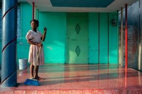 En 2005, Jane Evelyn Atwood se rend à Haïti, sa vision rompt radicalement avec l’imagerie que l’actualité impose régulièrement pour évoquer ce pays. Fascinée par ses habitants, la photographe choisit d’utiliser la couleur, avec ses ombres et ses contrastes, pour témoigner de la dignité et des espoirs d’un peuple qui ne se résout pas à la fatalité. L’œuvre de Jane Evelyn Atwood traduit une profonde intimité avec ses sujets, tissée au fil des années. Fascinée par les personnes hors normes et par la notion d’exclusion, elle pénètre des mondes que la plupart d’entre nous ignorent ou décident d’ignorer. Elle se consacre entièrement aux sujets qui la mobilisent, donnant à chacun le temps nécessaire – parfois plusieurs années – pour le sonder au-delà des apparences. Si cette exploration, en profondeur, caractérise sa démarche photographique, elle a néanmoins couvert ponctuellement des événements de l’actualité, tels le tremblement de terre de Kobe en 1995, les attentats contre le World Trade Center du 11 septembre 2001 et la Convention démocrate de 2004. Jane Evelyn Atwood qualifie sa méthode d’ “obsessionnelle”. Elle ne passe à un autre sujet que lorsqu’elle a le sentiment d’avoir pleinement compris celui qui l’absorbait et sa relation personnelle avec lui, jusqu’à ce que ses images traduisent cette empathie.