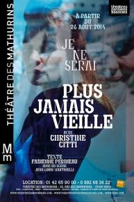 Je ne serai plus jamais vieille De Fabienne Périneau Avec Christine Citti Mise en scène de Du mardi au vendredi à 21h Tarif : 32 € Réservation par tél. au 01 42 65 90 00 Théâtre des Mathurins |