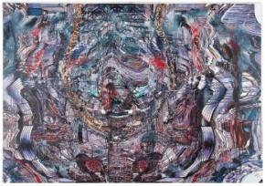 Les motifs de foule démultipliés et fragmentés aux points de vues innombrables, se reflètent les uns les autres dans un jeu d’écriture en miroir – manifestation de la transe, provoquant une sensation d’étouffement et de vertige (Léviathan 2010, Carpal fatigue 2010 ; Untitled (Pentagram arms) 2010).