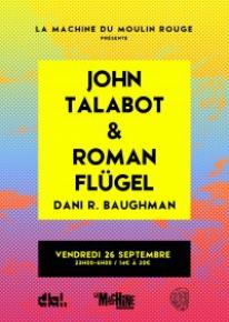 Evènement électro à la Machine Avec John Talabot, Roman Flügel et Dani R. Baughman Le vendredi 26 septembre 2014 Tarifs entre 14 et 20€ Réservation en ligne ou par tél. au 01 53 41 88 89 La Machine du Moulin Rouge