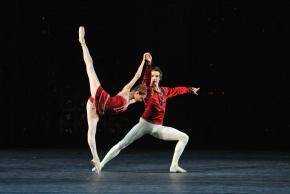 Chorégraphié à New York en 1967, ce ballet aux costumes sertis de pierreries et colorés comme des bijoux, célèbre les trois villes et les trois écoles de danse qui ont forgé l’élégance, l’esthétisme et le style du chorégraphe George Balanchine.