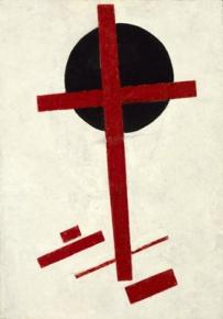 [Visuel : Kazimir Malevich: Mystiek suprematisme (rood kruis op zwarte cirkel), 1920. Collectie Stedelijk Museum Amsterdam]
