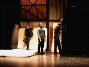 Espace à la fois vertical avec échafaudages, et horizontal, chutes amorties par l’épaisseur des matelas, nous sommes dans le QG d’une bande, les Savage Skulls, au retour d’une soirée. Fatigue, abandon et relâchement génèrent une danse déliée où le mouvement passe de corps en corps comme les canettes qu’ils s’échangent de main en main. Figures à deux ou à trois, parfois solitaires, KLP met en avant le passage du break dance de la rue à la scène et s’approprie cette transition pour composer une chorégraphie aux articulations fluides. Surtout, le collectif revendique la culture hip-hop comme cadre et support d’expressions où voisinent allègrement, dans les musiques comme dans la danse, cultures noires et latino-américaines.