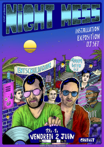NIGHT MESS est une rencontre à la fois musicale et artistique où Djs, peintres, photographes et graphistes investiront l’école de manière éphémère pour proposer un évènement unique. Dix artistes au total ont été sollicité, locaux mais aussi en provenance d’autres villes de France ou du monde. Tous sont des professionnels ou amateurs passionnés, connus ou en devenir.