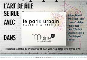 « L’Art de rue se rue », exposition collective de la galerie Le Pari(s) Urbain, nouvelle venue dans le monde des galeries de Street Art, s’invite jusqu’au 14 mars dans les locaux de la mairie du Xe arrondissement de Paris. La mairie du Xe arrondissement ouvre ses portes à la galerie Le Pari(s) Urbain et donne sa véritable place à l’Art Urbain au sein de la culture artistique contemporaine. Cette exposition est l’occasion pour le public de découvrir ou redécouvrir des talents cachés de l’Art Urbain mais aussi des artistes référents du Street Art. En cette nouvelle année 2014, la galerie Le Pari(s) Urbain et la mairie du Xe proposent une immersion dans l’univers riche, varié, porteur d’ouverture et de talents qu’est l’Art Urbain. |